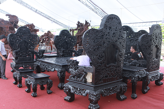 Cận cảnh bộ bàn ghế gỗ mun đen trị giá 27 tỷ của đại gia xứ Thanh Hóa